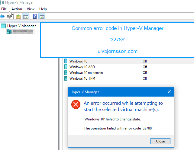 Hyper-V Manager: failed to change state. The operation failed with error code ‘32788’